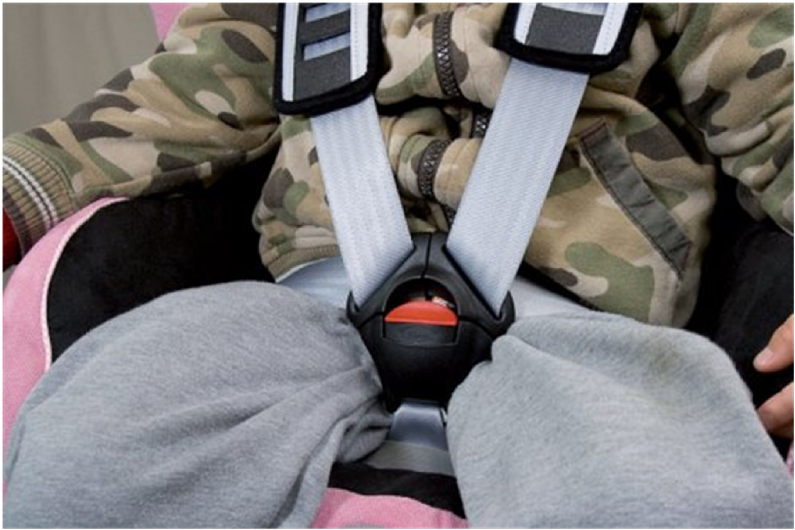 - Pokud je dítě připoutáno bezpečnostním pásem, nesmí mu vést přes krk (při nehodě by jej uškrtil), ale přes klíční kost.