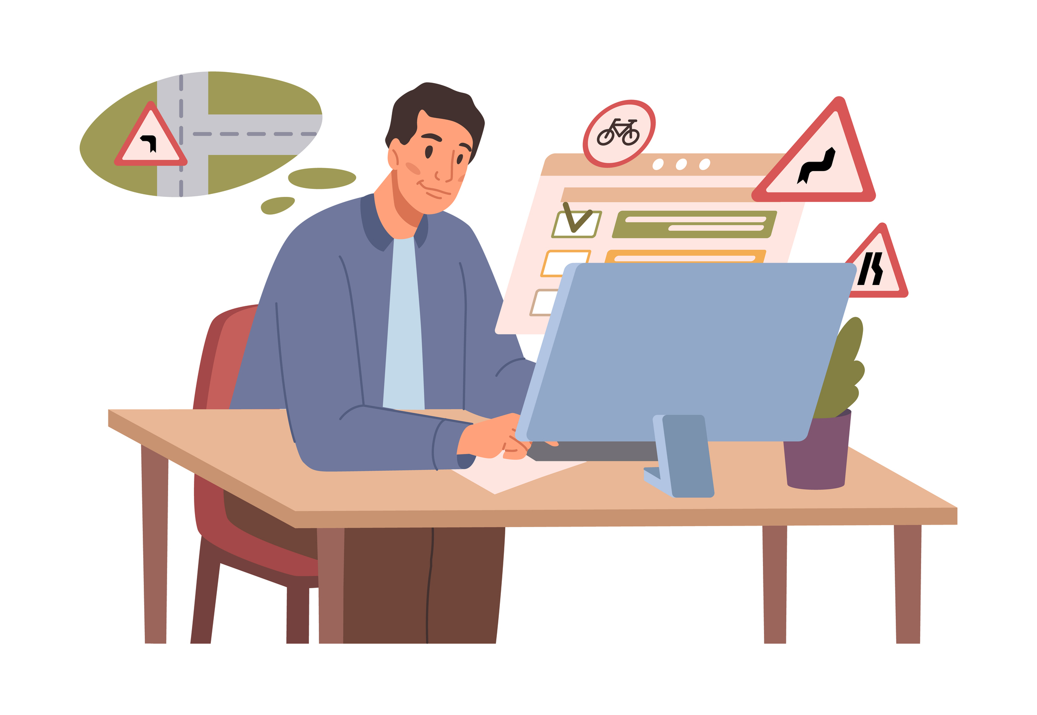 V testových sadách naleznou zájemci otázky z okruhů chodec, cyklista, řidič, e-mobilita, dopravní značky, orientace v křižovatce, pokyny policisty atd. Po označení a odeslání všech odpovědí se každý test sám vyhodnotí a uživateli ukáže bodové skóre jeho úspěšnosti, vč. správných a špatných odpovědí. V případě zájmu si každý může udělat kvíz znovu, a to s vygenerováním jiných otázek.