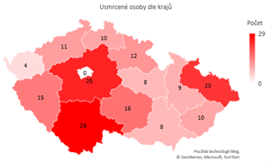 Obrázek 1 Usmrcené osoby dle krajů 2011-2020 Obrázek 2 Těžce zraněné osoby dle krajů 2011-2020