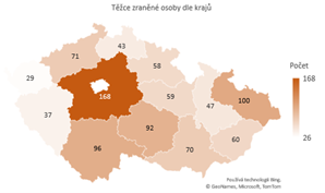 Z hlediska regionálního rozložení je možné konstatovat, že k největšímu počtu nejvážnějších nehod v letech 2011-2020 došlo ve Středočeském kraji (193). Nejvíce úmrtí v důsledku nehod vlivem námrazy, sněhu či náledí bylo evidováno v Jihočeském kraji (29).