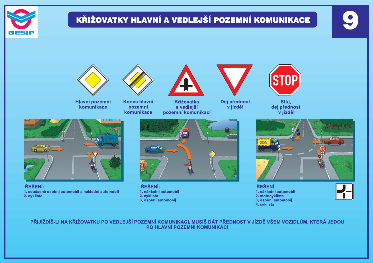 - 1 x křižovatka s předností upravenou SDZ (P2, P4, P6, E2b)
